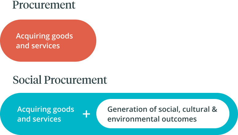 Social procurement not only creates additional value through the delivery of goods and services. It also provides business outcomes such as improved engagement, brand identity and competitive advantage.